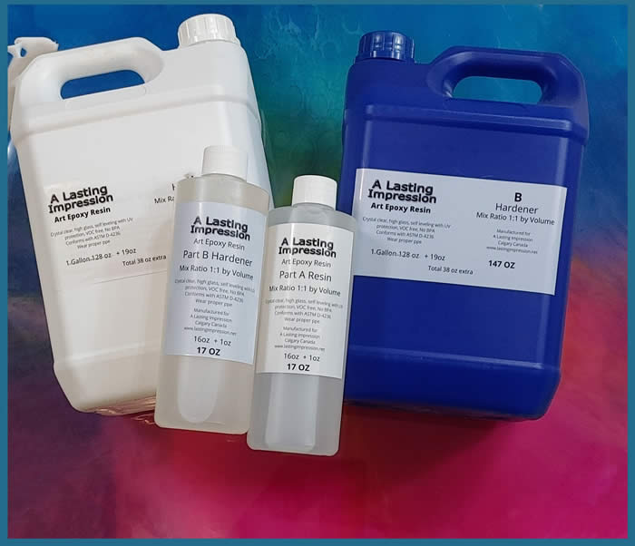 For a limited time I will be offering the same epoxy resin that I personally use for my resin paintings since 2017. I have 15 years experience with different kinds of resin and 6 years with epoxy resin In 6 years I have tried many brands of epoxy resin from top name to lower and this one performs like the top brand, might even be clearer and more uv resistant. Visit my instagram to see all the resin art I have created with it. https://www.instagram.com/diane.rossong.art/ Free Shipping in Canada! 2 1/4 gallon kit $160 plus gst Each container holds an extra 19oz 147 ounces each part A and B instead of 128 oz in a gallon for a total of 256ozs 38 ozs extra $160 plus gst 34 oz kit $50 plus gst And you get an extra ounce in each bottle 17oz of Part A 17 oz of part B